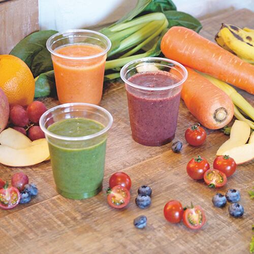 フルーツや野菜をそのまま使用した、簡単に作れるスムージーのセット